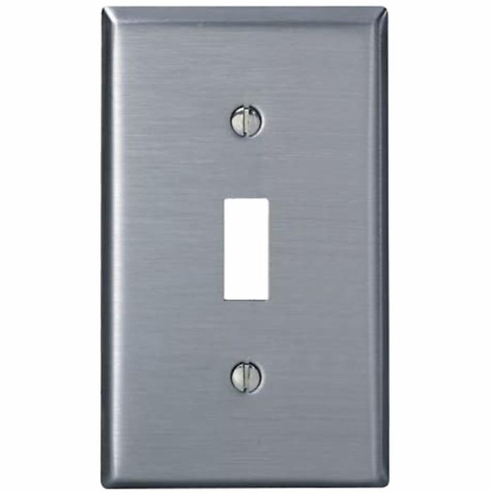LevitonĀ® Toggle Wallplate, 1-Gang, Standard Size, Device Mount, 302 Stainless Steel, Silver, Brushed Finish