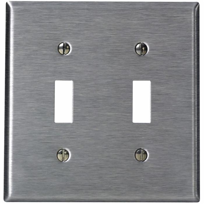LevitonĀ® Toggle Wallplate, 2-Gang, Standard Size, Device Mount, 302 Stainless Steel, Silver, Brushed Finish