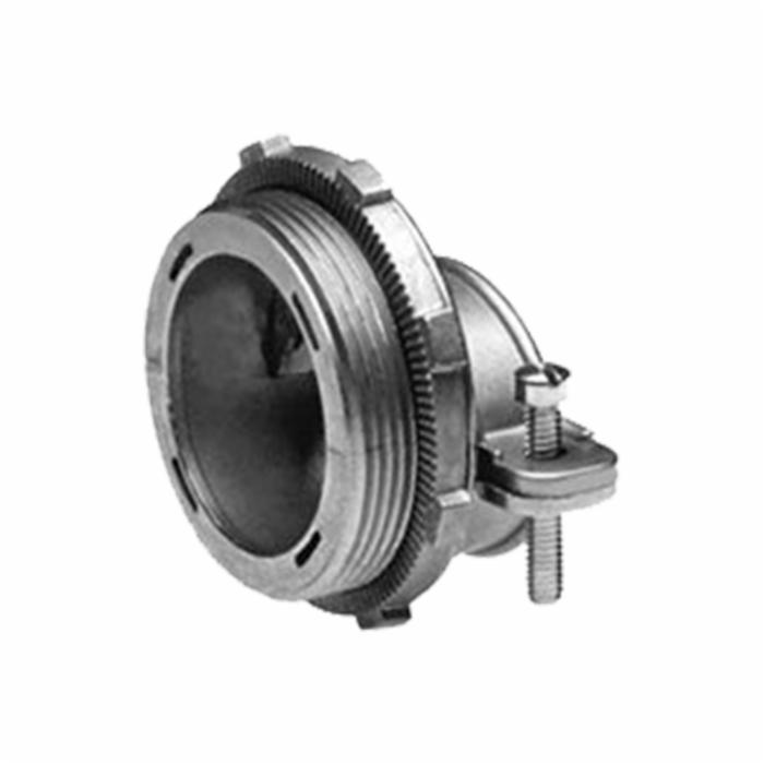 Bridgeport® Conduit Connector, Large Size Round Opening, 3 in, Cable Openings: 2-3/8 to 3 in, 180 deg, For Use With: 4-500 to 750 MCM Steel/Aluminum Metal Clad Cable, Die Cast Zinc, Ball Burnished/Mirror Smooth, 4-1/4 in L x 1-1/4 in W x 1-1/8 in D