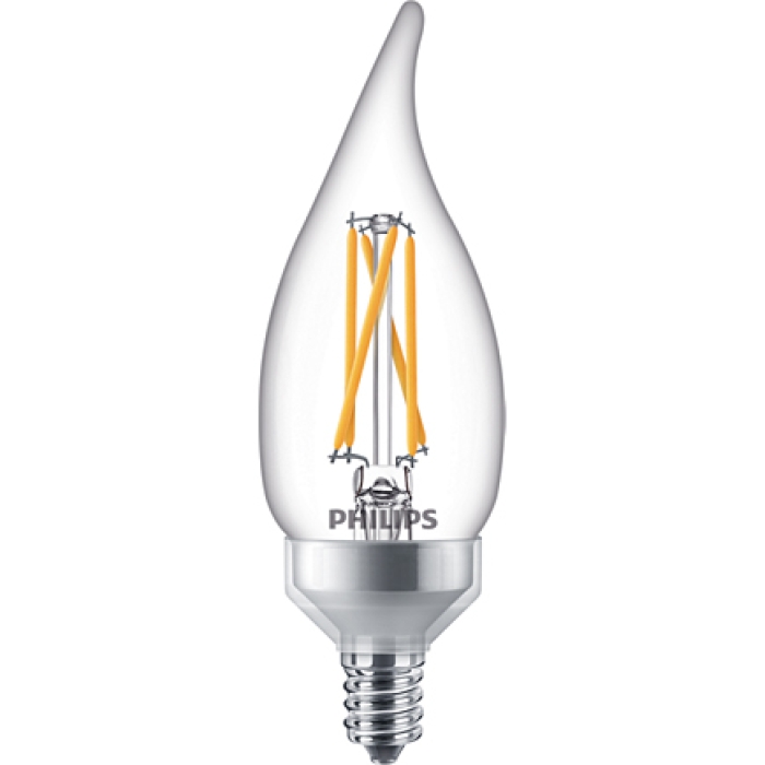 Philips LED Flame Tip Candle (BA11) Lamp, 3.3 W, 40 W Inc/Hal Equal, Candelabra (E12) Lamp Base, Clear Finish, Dimmable