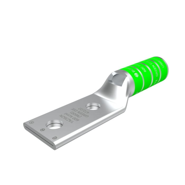 BURNDY® HYLUG™ 2-Hole Copper Compression Lug with Inspection Hole, Long Barrel, 600 kcmil Conductor, 1/2 in Stud, Green Color Code
