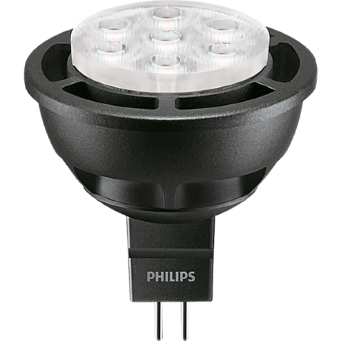Philips LED MR16 Lamp, 6.3 W, 42 W Inc/Hal Equivalent, 470 Lumens, 3000 K Color Temperature, GU5.3 Lamp Base, 91 CRI. 25,000 hr Average Life, Black
