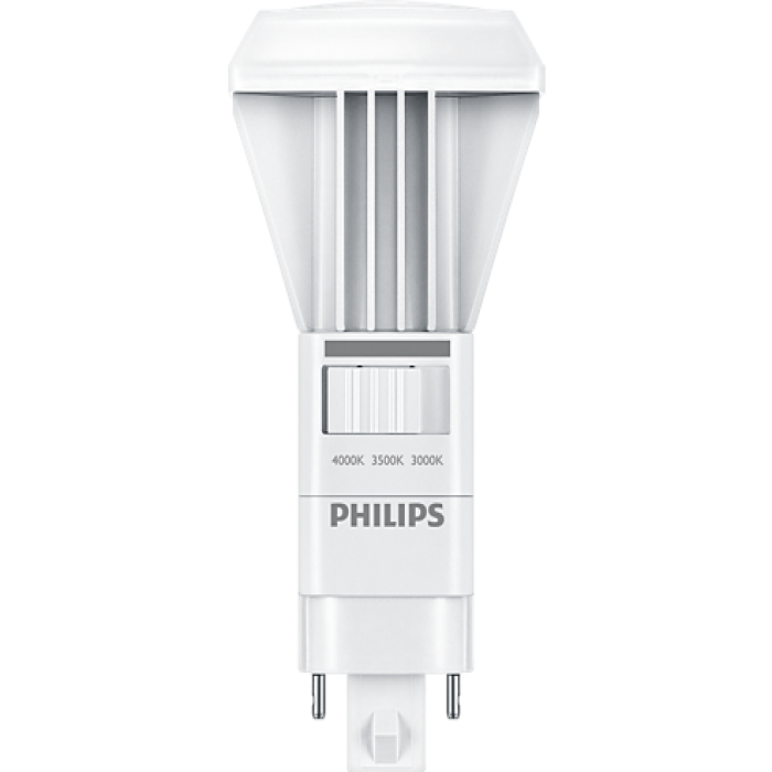 Philips Plug-In LED Lamp, 11 W, Color Selectable, Lumen Selectable, G24Q Lamp Base, Frosted, Plastic