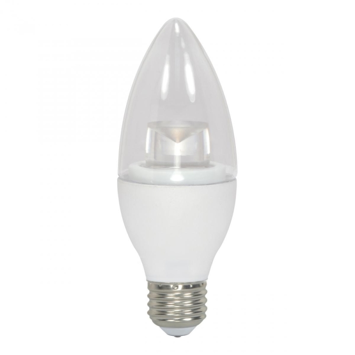 SATCO® LED Lamp, B11 Lamp Shape, 4.5 W, 40 W Inc/ Hal Equal, 2700 K Color Temperature, Candelabra (E12) Lamp Base, 300 Lumens, 80 CRI, 50,000 hr Average Life, Clear Finish, 120V, Dimmable