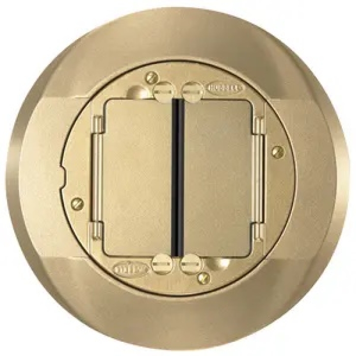 Wiring Device-Kellems SystemOne® Universal Cover Carpet Flange Assembly, Dual Hinged Doors, Round, Brass Powder Paint Finish