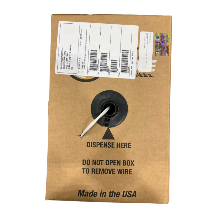 Lake Cable Security Alarm Cable, Plenum Rated, Unshielded, 14 AWG, 2 Conductor, White with Green Stripe, 1000 ft Pull Box
