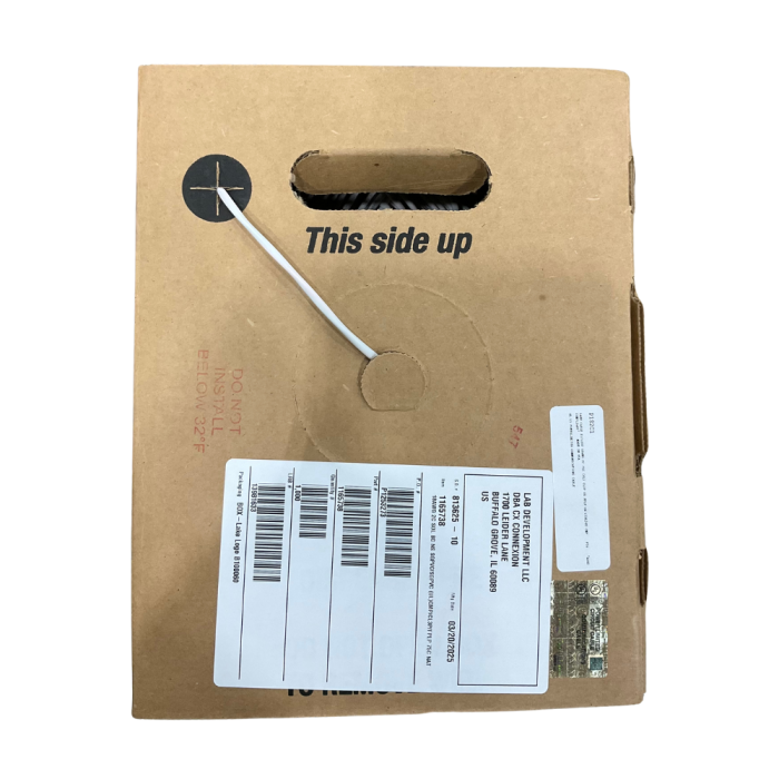 Lake Cable Security Alarm Cable, Plenum Rated, Unshielded, 18 AWG, 2 Conductor, White, 1000 ft Pull Box