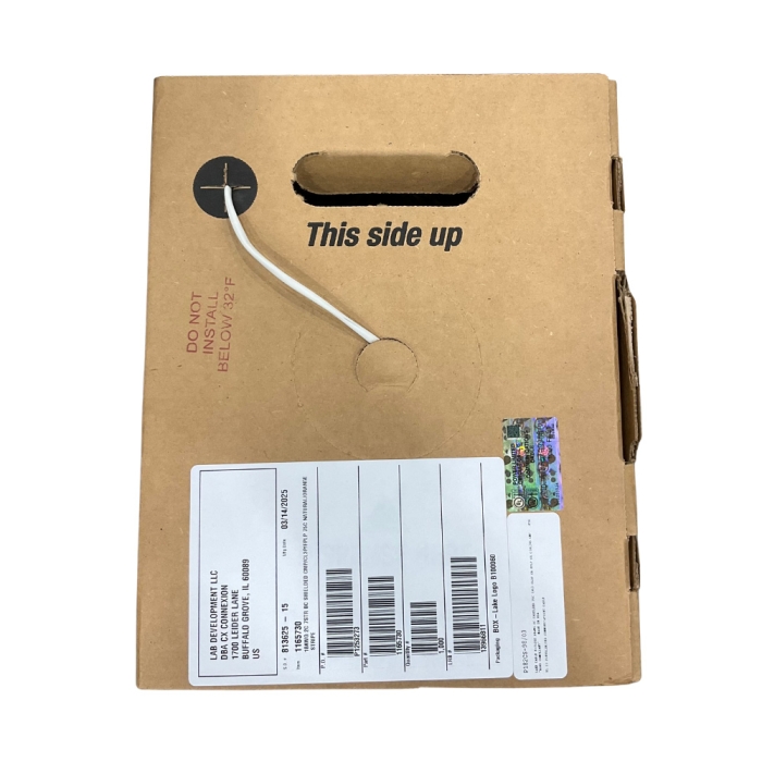 Lake Cable Security Alarm Cable, Plenum Rated, Shielded, 18 AWG, 2 Conductor, White with Orange Stripe, 1000 ft Pull Box