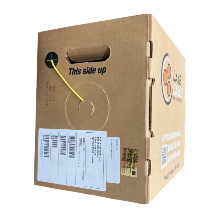 Lake Cable Security Alarm Cable, Plenum Rated, Shielded, 22 AWG, 2 Conductor, Yellow, 1000 ft Pull Box