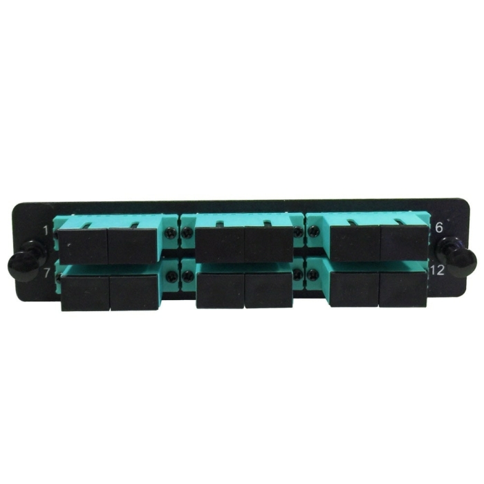 Lynn Electronics LGX Fiber Adapter Panel, 6 SC Duplex Ports, Multimode, 12 Fiber Capacity, Phosphor Bronze Sleeves, Steel, Black Powder Coat, Front/Back Port Numbering