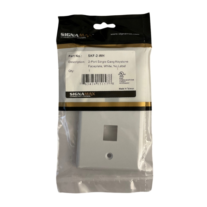 SIGNAMAX Keystone Faceplate, 1 Gang, 2 Port, Standard Size, Flush Mount, Plastic, White