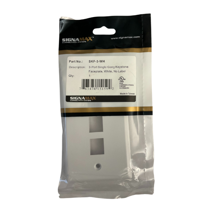 SIGNAMAX Keystone Faceplate, 1 Gang, 3 Port, Standard Size, Flush Mount, Plastic, White