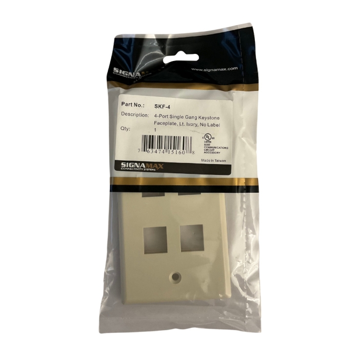 SIGNAMAX Keystone Faceplate, 1 Gang, 4 Port, Standard Size, Flush Mount, Plastic, Ivory