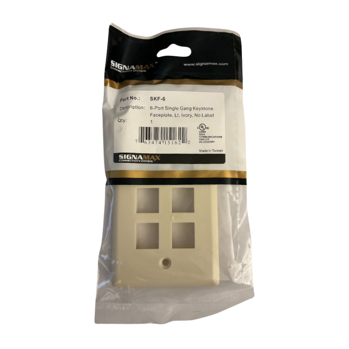 SIGNAMAX Keystone Faceplate, 1 Gang, 6 Port, Standard Size, Flush Mount, Plastic, Ivory