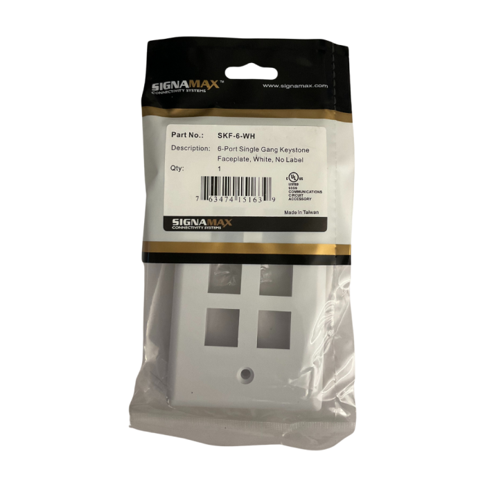SIGNAMAX Keystone Faceplate, 1 Gang, 6 Port, Standard Size, Flush Mount, Plastic, White