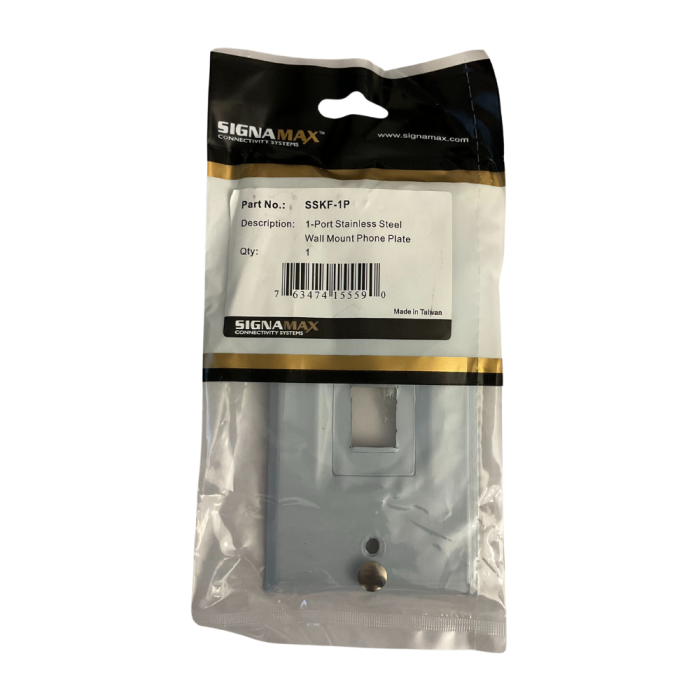 SIGNAMAX Keystone Phone Plate, 1 Gang, 1 Port, Standard Size, Flush Mount, Stainless Steel