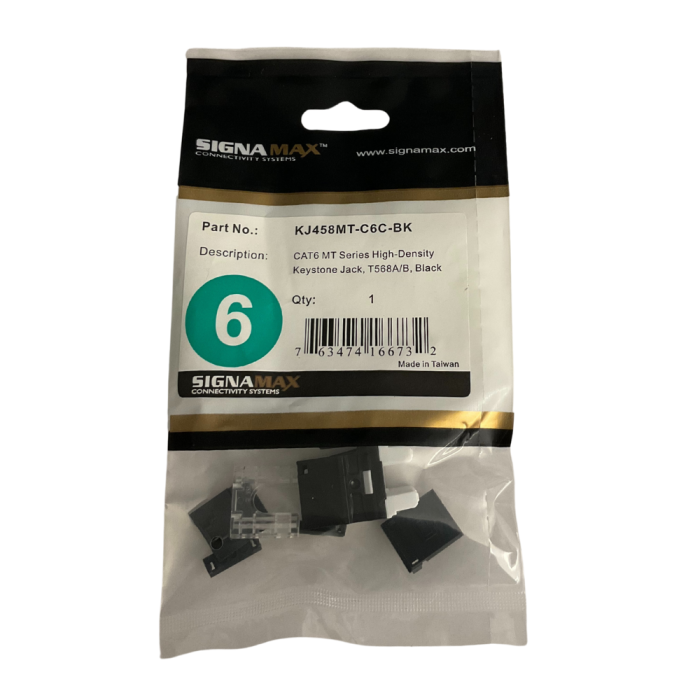 SIGNAMAX CAT6 Keystone Jack, 110 Punchdown, Plastic, Black