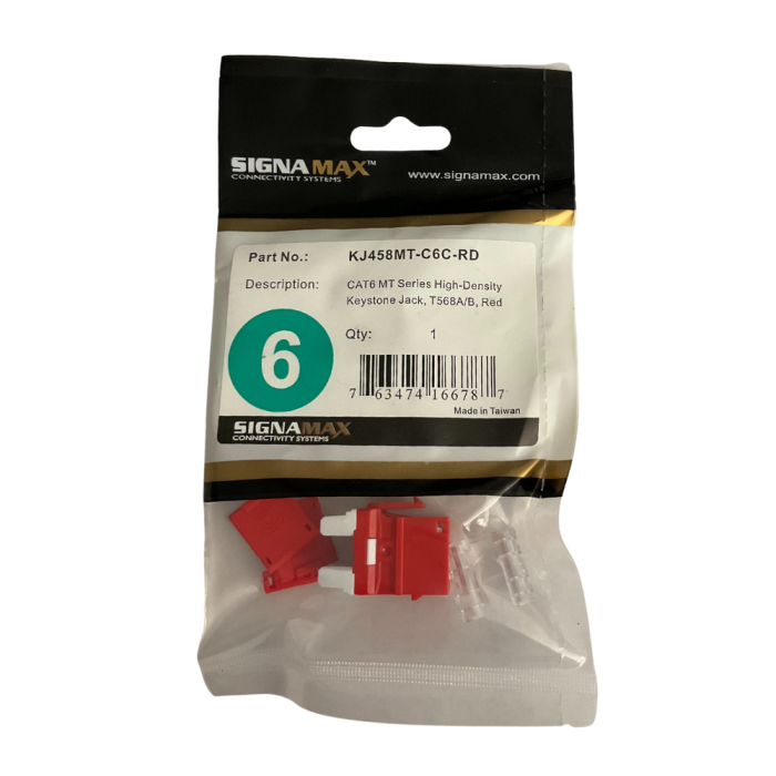 SIGNAMAX CAT6 Keystone Jack, 110 Punchdown, Plastic, Red